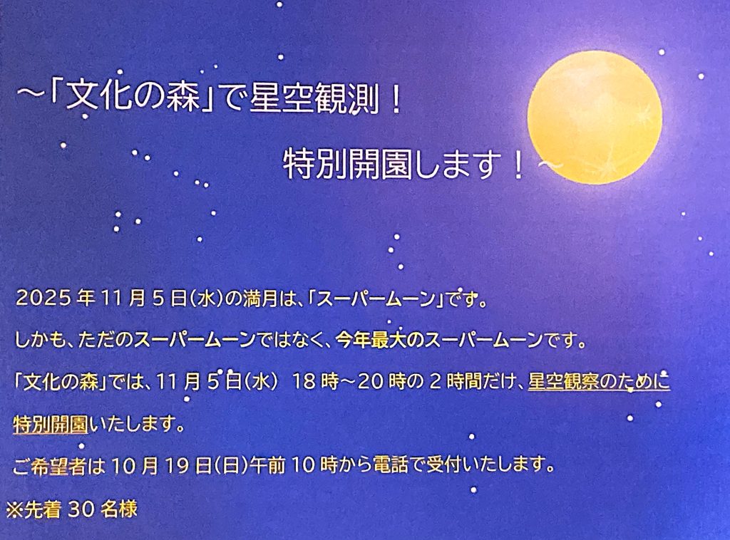 「文化の森」で星空観測! 11月5日(水)特別開園します!