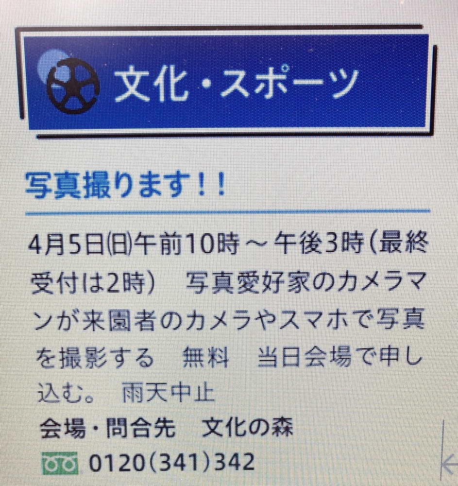 「文化の森」では、毎年桜の開花時期に「写真撮ります!」というイベントを