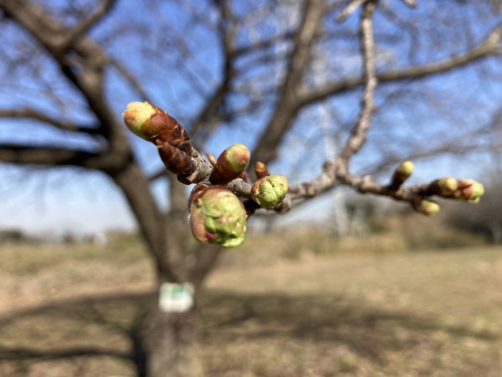1月21日(水) ここ2~3日前の暖かさで園内にある「河津桜」の蕾がふくらみ始めました。今週から来週にかけては最強寒波がやってきますので開花はまだ先のようですが、一歩一歩春が近づいていますね。