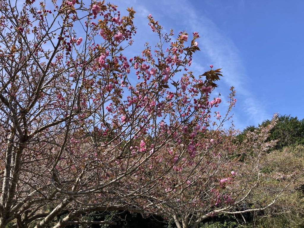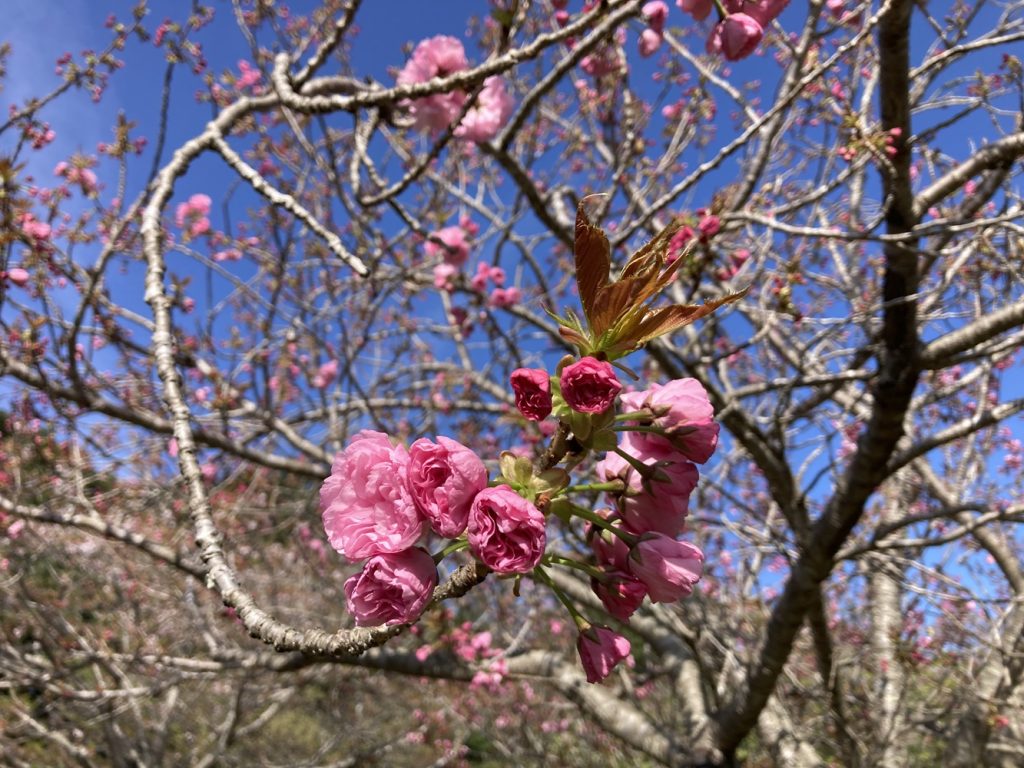 4月6日(月) 「文化の森」の桜の状況ですが、「ソメイヨシノ」は満開が過ぎ美しい散り際を見せてくれています。 濃いピンクの蕾が大きく膨らみ少しずつ咲き始めた「サトザクラ」がこれから来週にかけて見ごろを迎えるようです。園内では2月の「河津桜」から始まり「オオシマザクラ」「ソメイヨシノ」「ヤマザクラ」とバトンリレーを行い、八重の桜「サトザクラ」に至っております。